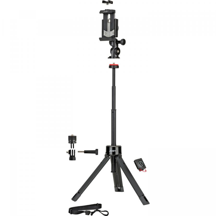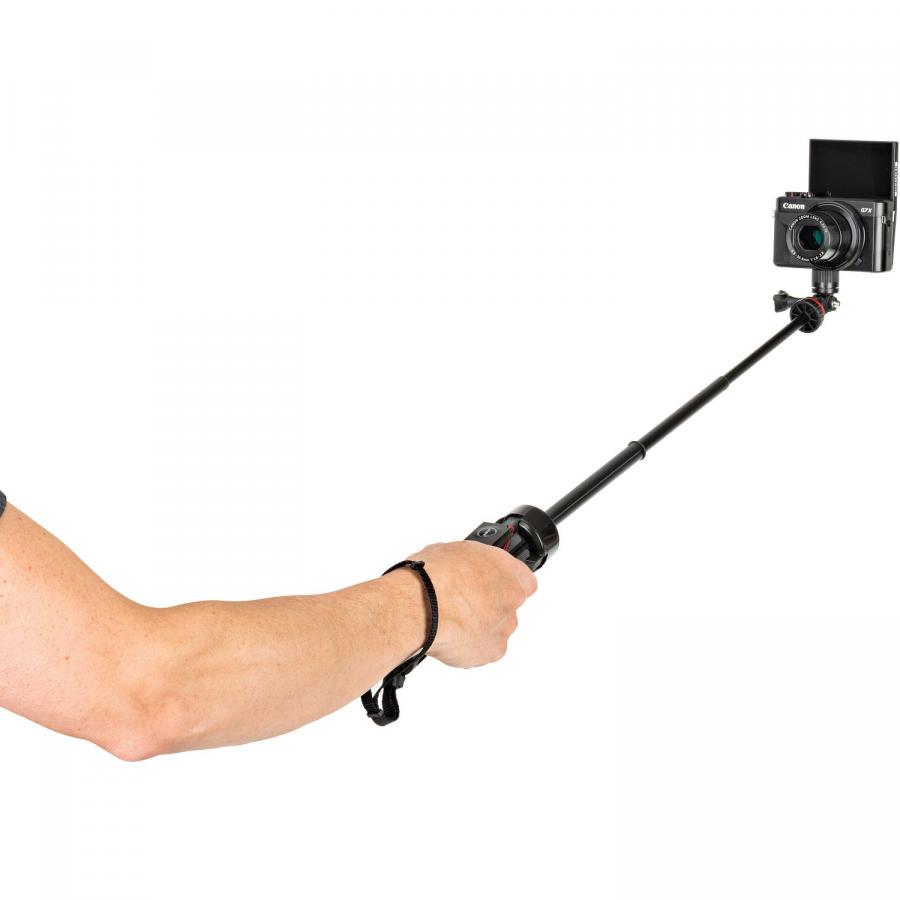 Trojsečná teleskopická stredová tyč s TwistLock aretáciou je zakončená 1" skrutkou. 3 statívové nohy aretovateľné v 3 polohách tvoria v zloženom stave grip s pogumovaným povrchom. Odnímateľnú BlueTooth spúšť (Impulse) možno nacvaknúť na grip alebo použiť samostatne (diaľková spúšť). Upínací držiak (klip) GripTight PRE Mount 2: