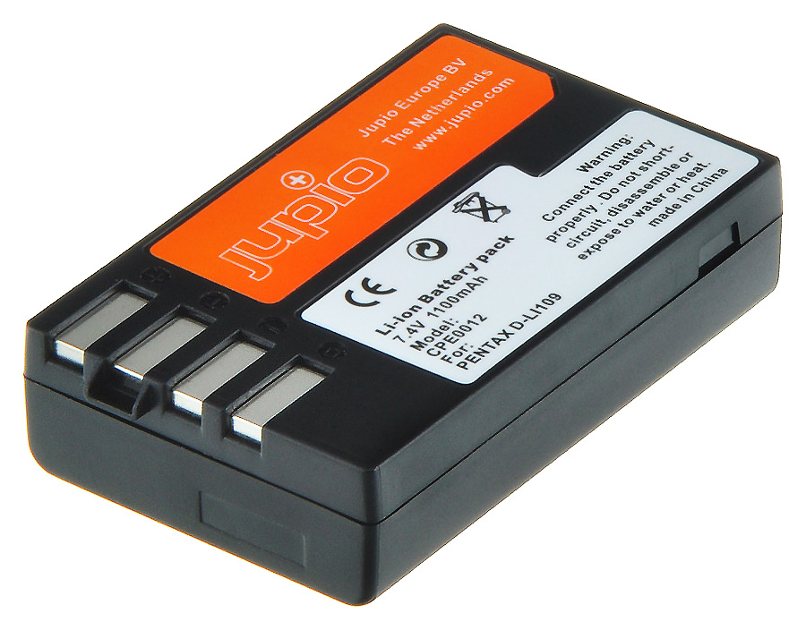 Jupio D-LI109 je alternatívny Li-Ion akumulátor, ktorým môžete nahradiť akumulátory Pentax D-LI109. Tento alternatívny Líthium-Iontový akumulátor s pracovným napätím 7,4V má kapacitou 1100mAh a je bez problémov zameniteľný s originálnymi akumulátormi Pentax. Akumulátor je kompatibilný s digitálnymi zrkadlovkami Pentax K-r / K-S1 / K-S2 / K-30 / K-50.