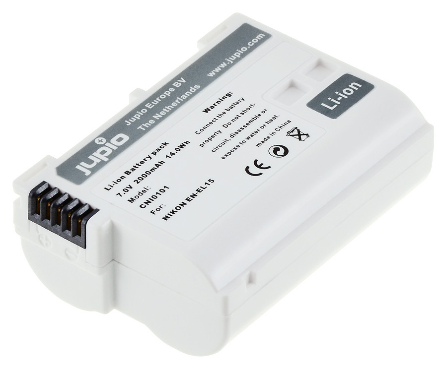 Jupio EN-EL15 je alternatívny Li-Ion akumulátor, ktorým môžete nahradiť akumulátory nikon EN-EL15. Tento alternatívny Líthium-Iontový akumulátor s pracovným napätím 7V má kapacitou 2000mAh a je bez problémov zameniteľný s originálnymi akumulátormi Nikon. Akumulátor je kompatibilný s digitálnymi zrkadlovkami Nikon D7000 / D7100 / D7200 / D500 / D600 / D610 / D750 / D800 / D800E / D810 ako aj so systémovými kompaktnými digitálnymi fotoaparátmi Nikon 1 V1.