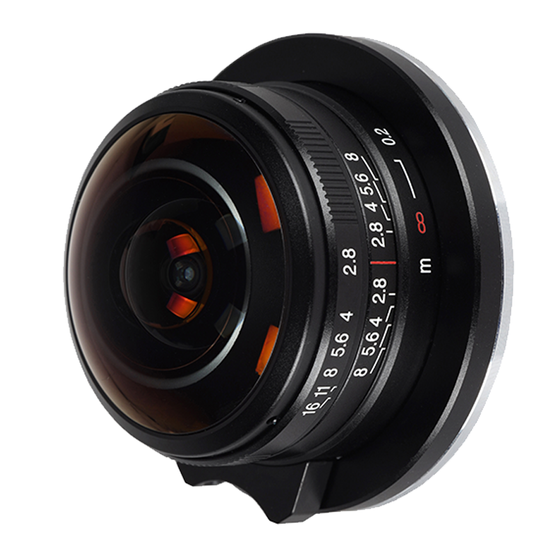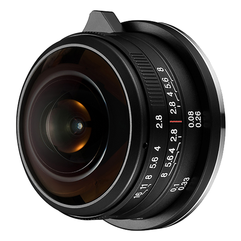 - Laowa 4mm f/2.8 Fisheye, baj. L-mount