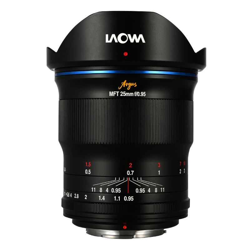 - Laowa Argus 25mm f/0.95 APO, baj. Micro 4/3