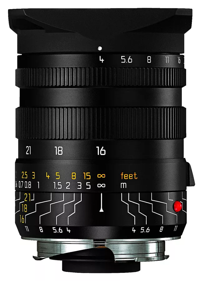 Leica TRI-ELMAR-M_16-18-21mm_f/4 je špeciálny ultra širokouhlý objektív, ktorý vďaka svojej unikátnej konštrukcii dokáže nahradiť až tri pevné objektívy. Objektív z kompaktnej rady M poskytuje pri konštantnej svetelnosti f/4 tri ultra širokouhlé ohniská a to: 16mm f/4 so zorným uhlom 107°, 18mm f/4 so zorným uhlom 100° a 21mm f/4 so zorným uhlom 92°. Objektív je veľmi obľúbeným nástrojom fotografov krajiny a architektúry a to najmä pre svoju univerzalitu, kompaktnosť a tradičnú nekompromisnú obrazovú kvalitu značky Leica, ktorej nadštandardný optický výkon garantuje dvojica použitých asféricky tvarovaných šošoviek v optickej sústave. Optická sústava objektívu pozostáva z celkovo desiatich optických členov zoradených do siedmych skupín, z ktorých dva optické členy majú asféricky tvarovaný povrch. Tieto špeciálne tvarované asférické šošovky sú navrhnuté tak aby objektív vo výsledku poskytoval vynikajúci optický výkon od stredu až po rohy obrazového poľa a nedochádzalo ku skresleniu či deformáciám obrazu v rohoch. V prípade nasadenia objektívu na diaľkomerný fotoaparát Leica M8, ktorý je vybavený snímačom veľkosti APS-H sú po prepočte jeho ohnisové vzdialenosti približne 21mm, 24mm, 28mm. Objektív výborne kreslí už pri plnom odclonení a po priclonení na pracovné rozsahy clony od f/5.6 vyššie sa dostanete do oblasti pracovných clôn pri ktorých objektív vyniká mimoriadnou ostrosťou. Vďaka vyhotoveniu konštrukcii zaostrovacej skupiny ako plávajúcej sa dosahuje dokonalá obrazová kvalita aj v oblasti zaostrenia na najkratšiu zaostrovaciu vzdialenosť 0,7m. Optická sústava objektívu excelentne koriguje skreslenie a prakticky netrpí vinetáciou po rohoch obrazového poľa. Objektív je vybavený patentovanou obdĺžnikovou slnečnou clonou, ktorá účinné eliminuje vplyv parazitného svetla na kontrast fotografií a vznik odleskov. Tento objektív je vybavený filtrovým závitom pre kruhové filtre E67 o priemere 67mm. K objektívu je možnosť si dokúpiť špeciálny univerzálny optický zrkadlový hľadáčik Leica Universal Wide Angle Viewfinder M za pomoci ktorého je možná presná práca s kompozíciou. Tento prídavný hľadáčik sa zasúva do sánok na blesk a vďaka obrovskej hĺbke ostrosti s využitím zaostrenia na hyperfokálnu vzdialenosť je ideálnym riešením pre spontánne a intuitívne fotografovanie s diaľkomernými fotoaparátmi Leica M.