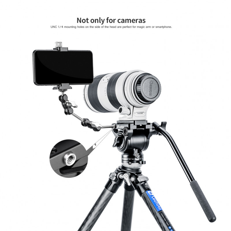 Fluidná videohlava Leofoto je ideálna na použitie s videokamerami a digitálnymi zrkadlovkami. Hlava je opatrená bezpečnostným systémom proti vyšmyknutiu, ktorý je zhodný pre všetky hlavy Leofoto. Hlava pracuje jemne, jej pohyb je nastaviteľný a ovládanie je intuitívne. Pre presné nastavenie hlavy do horizontálnej polohy je opatrená dvoma nivelačnými libelami.