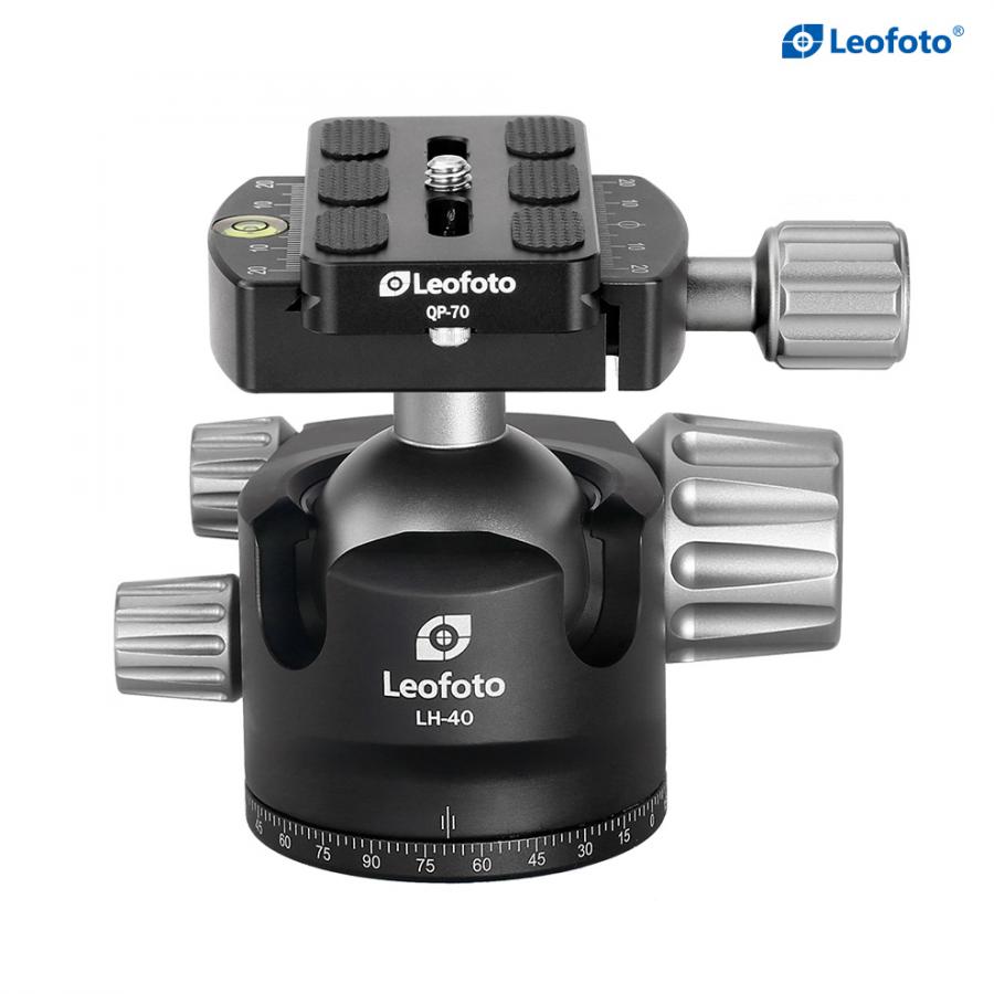 Vyrobená na CNC frézach, z čierneho eloxovaného leteckého hliníka, so zabudovanou vodováhou. Pohyb guľového kĺbu až o 90 ° v dvoch zárezoch je regulovaný pevným skrutkou. U nastavenie polohy hlavy je možné samostatným skrutkou regulovať silu doťahu ("friction control"). Horizontálny pohyb je regulovaný tretím, samostatným skrutkou. Pri hmotnosti iba 540 g môže guľová hlava Leofoto LH-40 stabilizovať foto zostavu s celkovou hmotnosťou až 20 kg. Napriek tejto sile je jej výška len 95 mm, takže je ťažisko nízke a znižuje nežiadúce vibrácie. Hlava je opatrená statívovým závitom 3/8 ". Rýchloupínadlo doštička hlavy je kompatibilný so štandardom Arca-swiss.