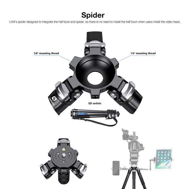 S montážnymi skrutkami 1/4"-20 a 3/8"-16 na hlave a rozhraním Arca-Swiss je tento statív kompatibilný s širokou škálou fotoaparátov – od digitálnych zrkadloviek, cez bezzrkadlovky až po kompaktné videokamery s hmotnosťou do 10 kg.