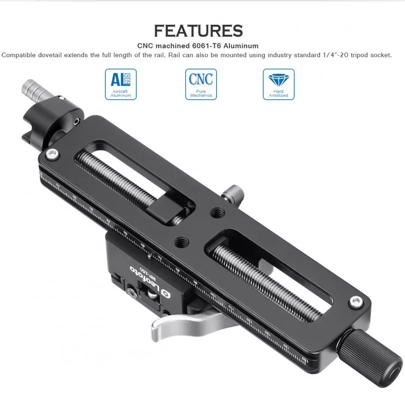 Leofoto MP-180S, ostriaca koľajnica na makro