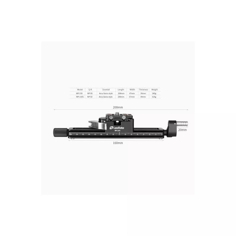 - Leofoto MP-180S, ostriaca koľajnica na makro