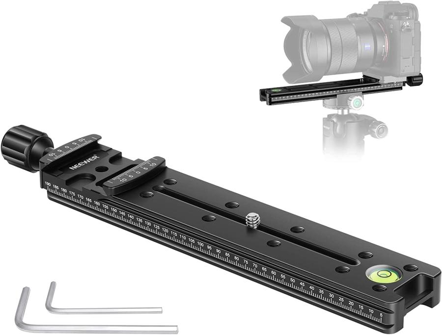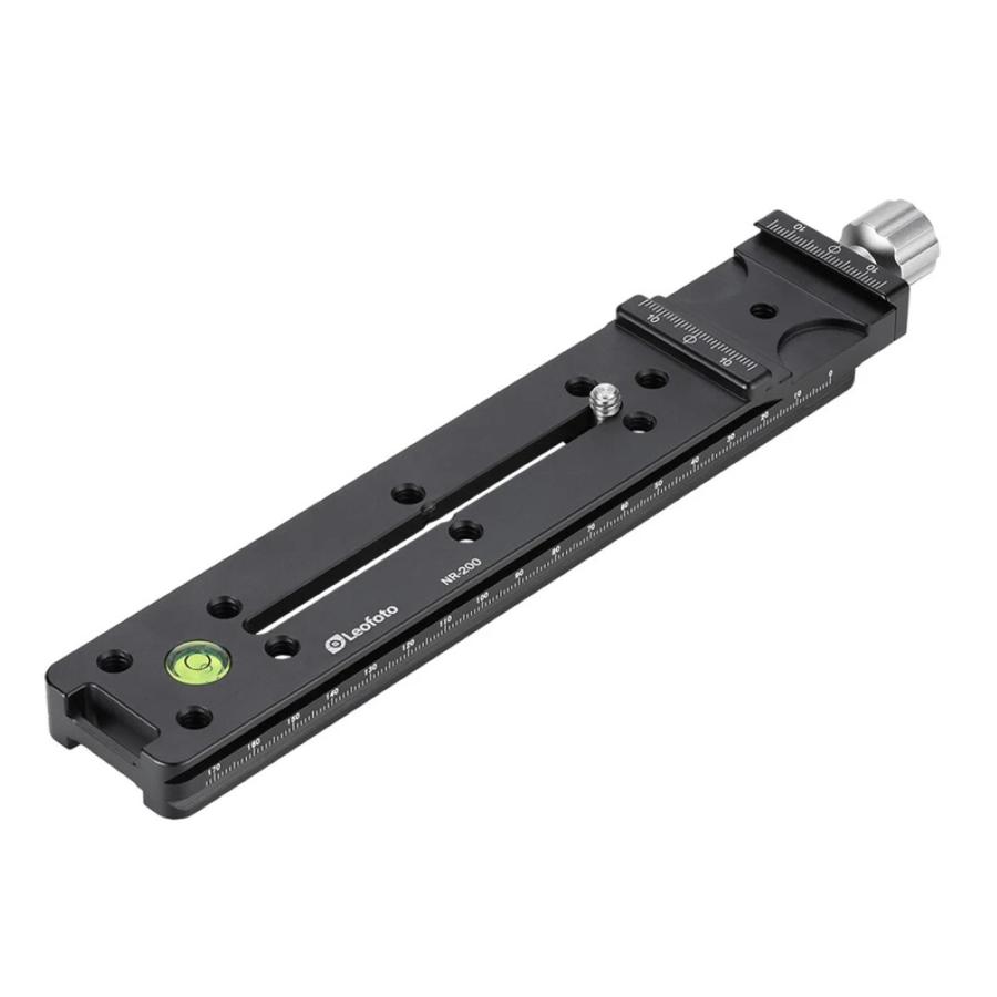 Prídavnú lištu NR-200 môžete použiť na rôzne aplikácie, ako je makro lišta alebo na stavbu panoramatickej hlavy. Vďaka vstavanej vodováhe a laserom gravírovanej milimetrovej stupnici môžete kameru namontovať veľmi presne. NR-200 je dlhý 227 mm a váži 140 g. Lišta na príslušenstvo je 38 mm široká a 20 mm vysoká vrátane rýchloupínania. Vďaka 1/4-palcovým otvorom na skrutky môžete NR-200 jednoducho namontovať na akúkoľvek hlavu statívu. Spojka Arca-Swiss so skrutkovým zámkom na vrchu koľajnice NR-200 akceptuje všetky platne Arca-Swiss a L platničky. Táto skratka Arca-Swiss vám umožňuje umiestniť túto koľajnicu na hlavu statívu presne tak, ako chcete.
