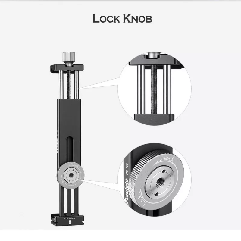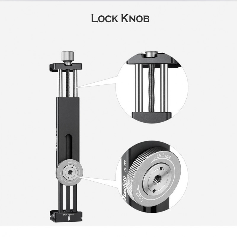Univerzálna svorka na uchytenie mobilného telefónu, displeja, alebo ďalšieho príslušenstva. Uchytenie je plne kompatibilné s hlavami typu Arca-swiss, obsahuje tiež závit UNC 1/4". Veľkosť 165 mm.
