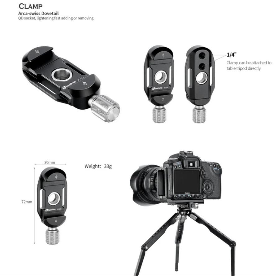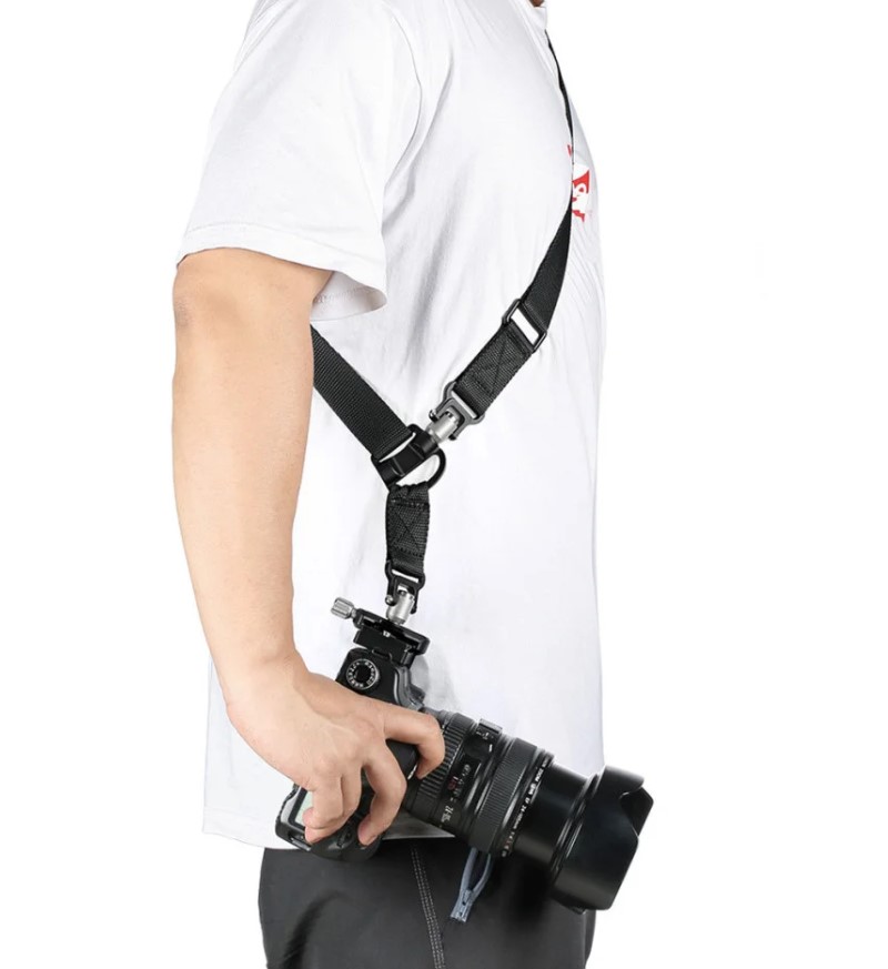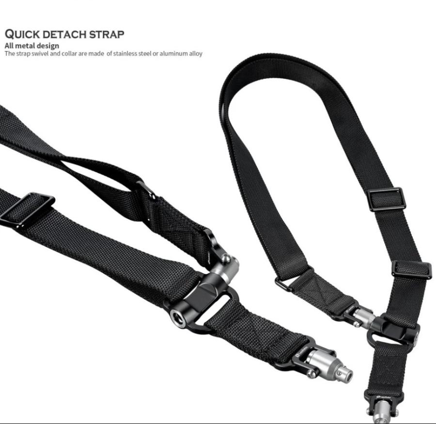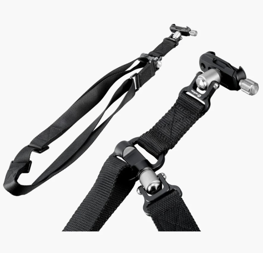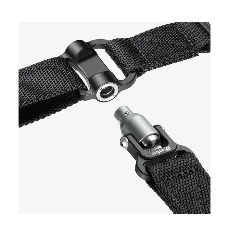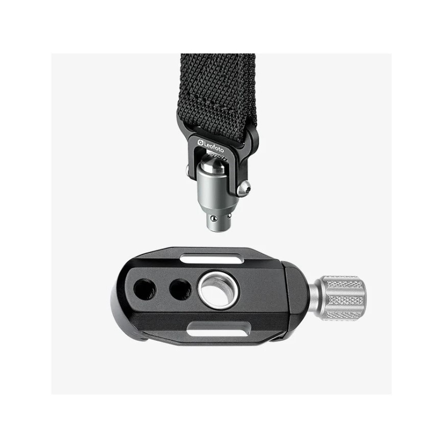 Popruh na fotoaparát Leofoto je kompatibilný s rýchlozamykacími zámkami Leofoto QD. Balenie obsahuje aj miniatúrne sánky Arca swiss, takže je na popruhu možné nosiť akýkoľvek fotoaparát opatrený arca swiss doštičkou.