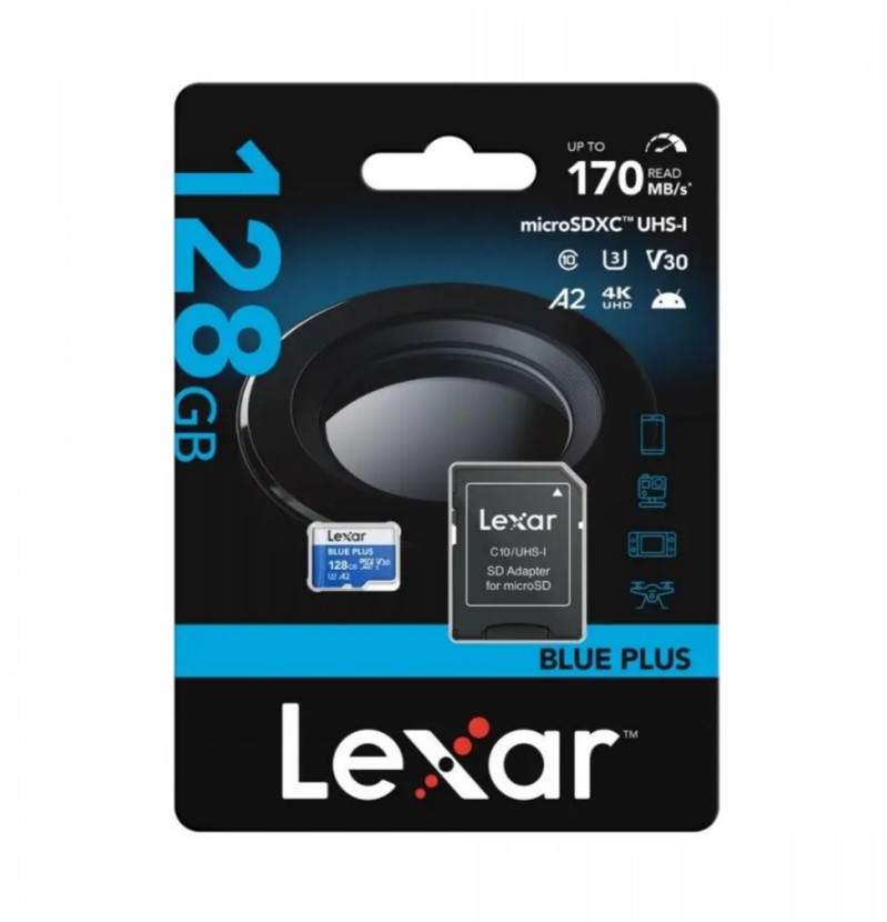 - Lexar microSDHC Blue Plus A2 V30 128GB