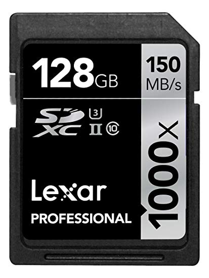 - Lexar Professional 128GB 1000X SDHC/SDXC UHS-II 150 MB/s