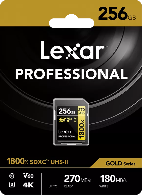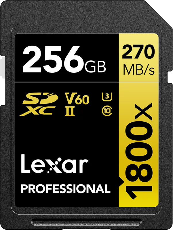 - Lexar Professional 1800x SDXC U3 (V60) UHS-II R270/W180 256GB
