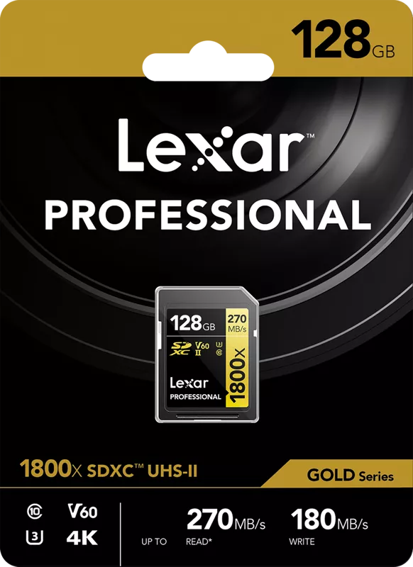 - Lexar Professional 1800x SDXC U3 (V60) UHS-II R280/W210 128GB