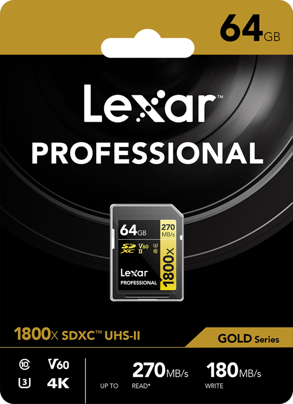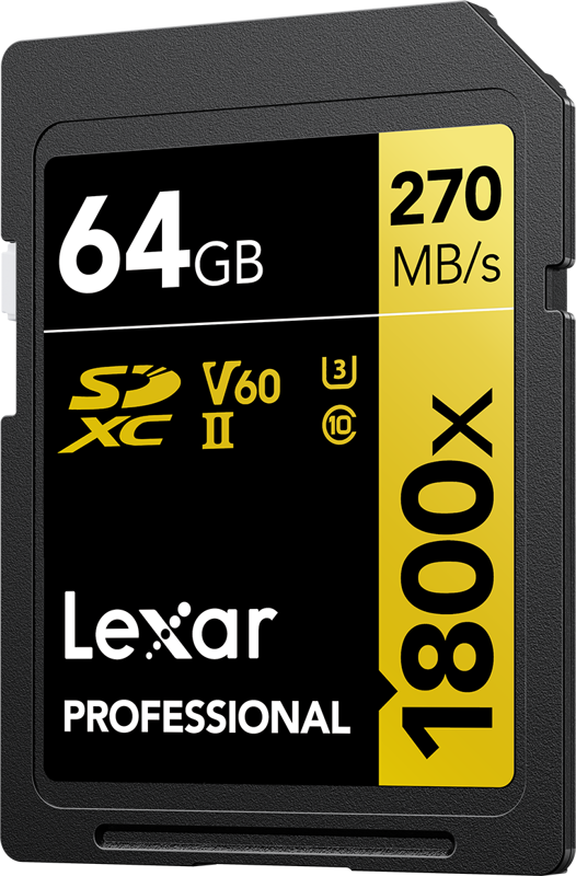 - Lexar Professional 1800x SDXC U3 (V60) UHS-II R280/W210 64GB
