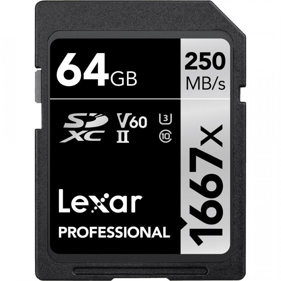- Lexar Professional 64GB 1667X SDHC/SDXC UHS-II 250 MB/s