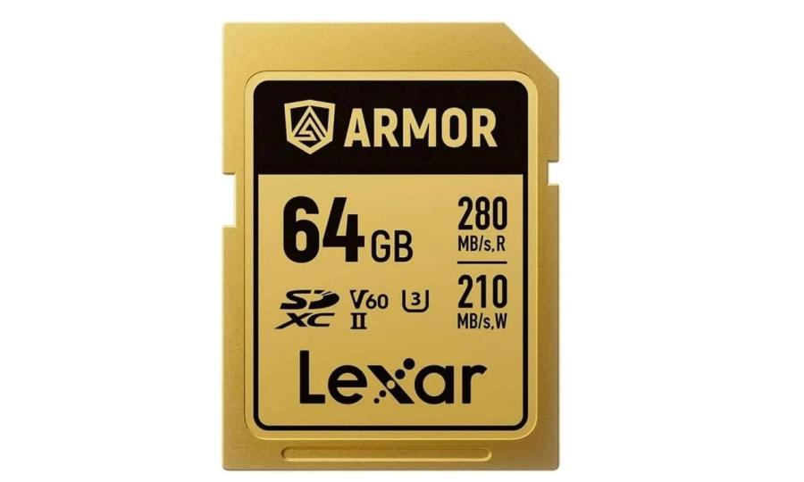 - Lexar SDXC 64GB ARMOR Gold UHS-II U3, Stainless Steel, IP68 R280/W210 (V60)