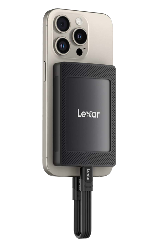 Prenosný disk SSD Lexar SL500 podporuje nahrávanie v režime Apple Pro Res. Natáčajte priamo na disk v rozlíšení až 4K 60 FPS pomocou zariadení iPhone 15 Pro a iPhone 15 Pro Max.
