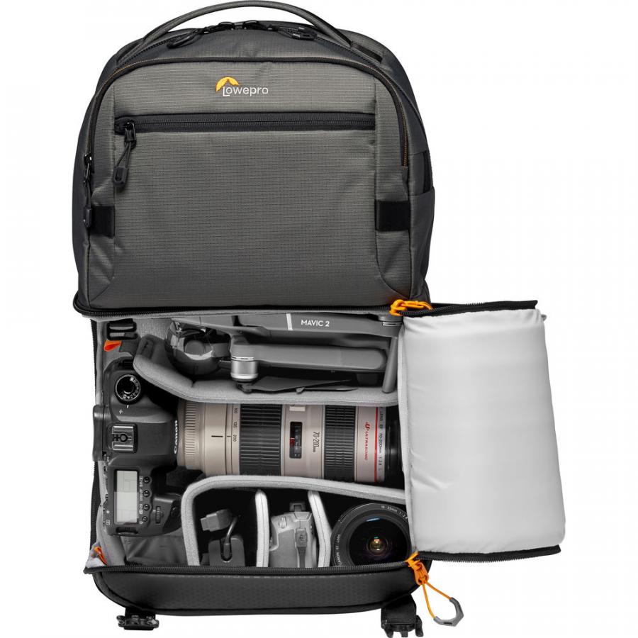 Lowepro Fastpack Pro 250 AW III (grey) je veľmi praktický a maximálne funkčný trojkomorový fotobatoh z rady Fastpack AW , ktorá prichádza ako náhrada úspešných modelových rad Fastpack a Fastpack AW ll. Lowepro Fastpack Pro 250 AW III sa vyznačuje sa moderným nadčasovým dizajnom, praktickou a funkčnou konštrukciou, maximalizujúcou svojím trojkomorovým usporiadaním úložný priestor s rýchlym prístupom do fotokomory. Batoh je vyrobený z nových odolných vonkajších materiálov, vďaka ktorým je pevný, ľahký a poskytuje dokonalú ochranu uloženej fototechnike. Vnútorný priestor sa delí na hornú komoru, dolnú fotokomoru a na zadnú komoru.