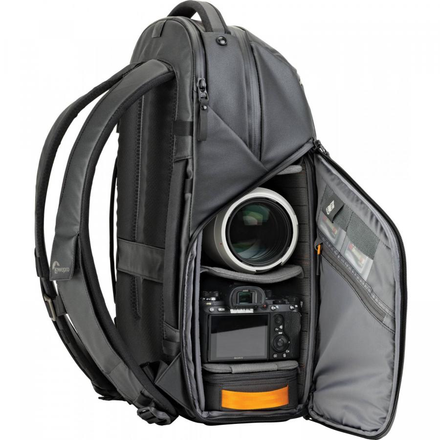 - pevná trojkomorová konštrukcia: hlavná fotokomora s bočným prístupom z oboch strán, horná komora pre uloženie foto techniky a osobných vecí a príslušenstva, zadná komora pre 15“ notebook prístupná z hornej strany (Cradle Fit™),