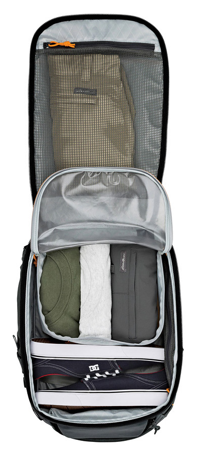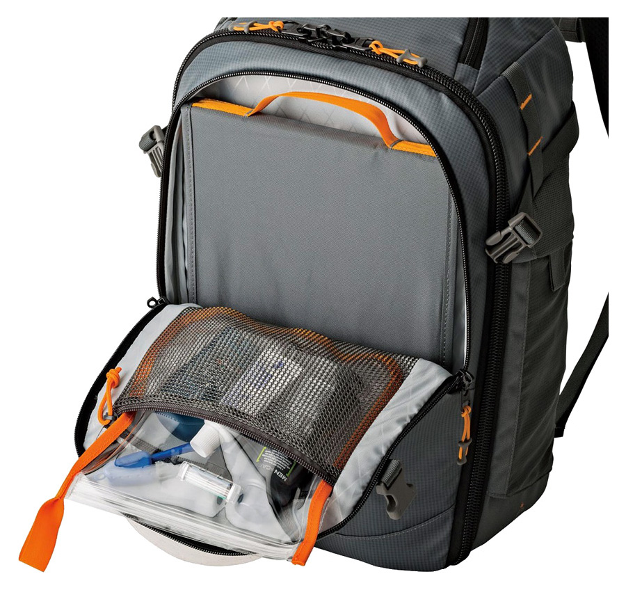 Lowepro HighLine BP 300 AW je praktický cestovný batoh neformálneho dizajnu z novej rady HighLine zameranej na funkčnosť, praktickosť a kvalitu. Batoh je svojím určením vhodný pre cestovateľov čo sa chcú prakticky pobaliť aj s fototechnikou do jednej batožiny. Je vyrobený z ľahkých vysoko odolných technických materiálov a je vybavený veľkou polstrovanou hlavnou komorou. Táto je vybavená vnútorným priehľadným vreckom pre drobnosti, sťahovacími popruhmi s prackami pre uloženie oblečenia a vyberateľným veľkým obalom z priehľadného PE (PolyEtylén) materiálu pre prehľadné uloženie oblečenia. Hlavná komora je prístupná cez veľké prednú stranu batoha tvoriace veko uzatvárateľné pomocou robustného kovového YKK zipsu s dvomi jazdcami s poistnými okami pre uzamknutie malým visiacim zámkom. Vo veku hlavnej komory je objemná predná komora prístupná z prednej strany batoha cez robustný kovový YKK zips s dvomi jazdcami. V nej je uložený vyberateľný priehradkový JumKit™ organizér pre uloženie až 13“ notebooku, 10“ tabletu, dokumentov, mobilného telefónu, peňaženky, dokladov, písacích potrieb, okuliarov a podobného osobného príslušenstva. V tejto prednej komore je aj veľké sieťované vrecko na zips v ktorom je uložené vyberateľné priehľadné PE (PolyEtylénové) puzdro pre hygienické potreby. Z vonkajšej strany batohu je na veku hlavnej komory ešte jedno praktické vrecko prístupné cez robustný kovový YKK zips s jedným jazdcom, ktoré ponúka okrem kľúčenky priestor pre menšiu osobnú výbavu. Na vnútornej strane veka hlavnej komory je ešte jedno sieťované priehľadné vrecko na zips kde je možné uložiť napr. tenkú nepremokavú bundu. Z vonka na bokoch batohu sú dve elastické sieťované vrecká pre uloženie napr. fľaše a ďalších osobných vecí. Batoh je vybavený sofistikovaným systémom fixačných sťahovacích popruhov s karabínkami a očkami pre upevnenie veľmi ťažkej výbavy na prednej a bočnej strane batohu. Rovnako sú zvonka na batohu aj dva kompresné popruhy s prackami pre stiahnutie batohu a reguláciu jeho vnútorného objemu. Na vrchu batohu nájdete pevnú rukoväť pre pohodlné a praktické prenášanie batohu pozdĺž tela a manipuláciu s ním. Chrbtový systém batoha – ActivZone System™ je navrhnutý pre dokonalý komfort pri pohybe s batohom na chrbte. Skladá sa z ergonomických ramenných popruhov s posuvným hrudným fixačným popruhom a dokonale tvarovanej, dobre vypolstrovanej a odvetranej chrbtovej časti. Robustnosť a odolnosť batohu umocňujú mimoriadne odolné vonkajšie materiály a robustné kovové YKK zipsy, ktorým nevadí ani sneh, dážď či bahno. Ak by to ale bolo potrebné, tak batoh je vybavený All Weather Cover™ pláštenkou pre ochranu batohu a vecí v ňom uložených pred extrémnymi klimatickými podmienkami.