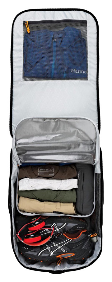 Materiály: Nylon Oxford 420D, 420 s TPU vrstvou, Nylon 210D, vysoko odolná Cordura, dýchateľný chrbtový panel a ramenné popruhy z EVA polstrovania.