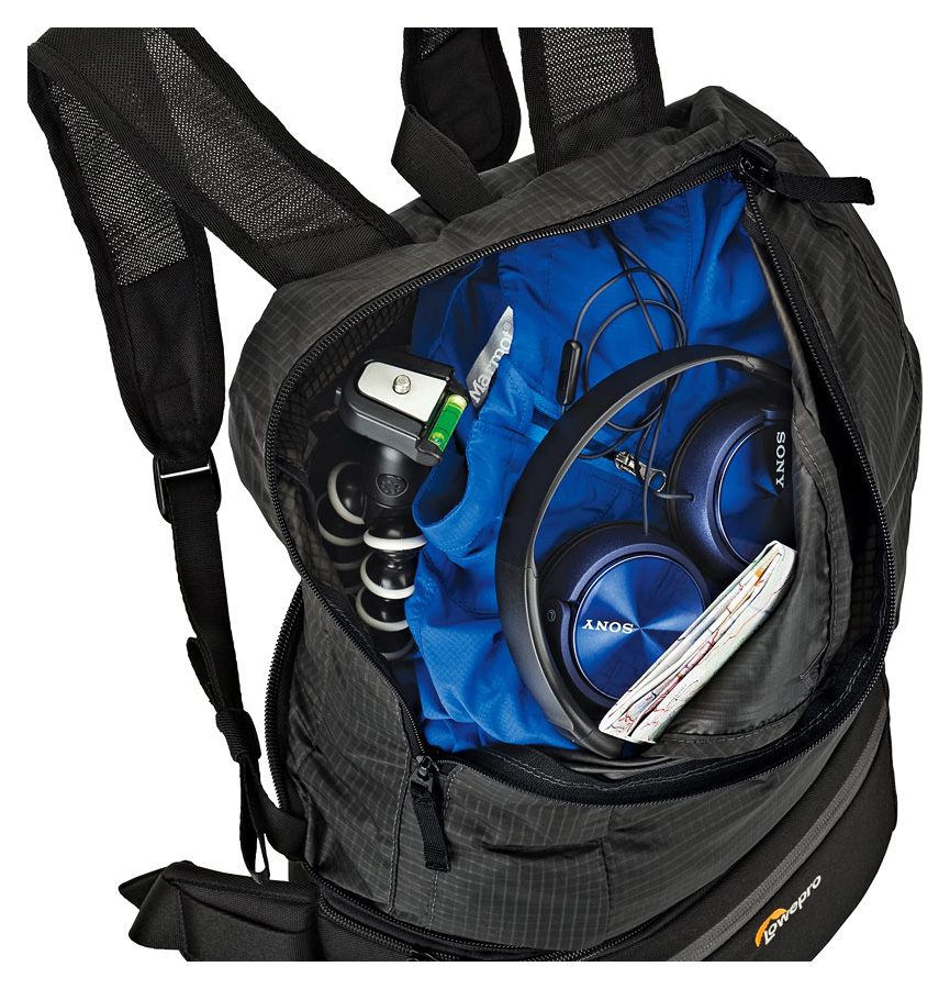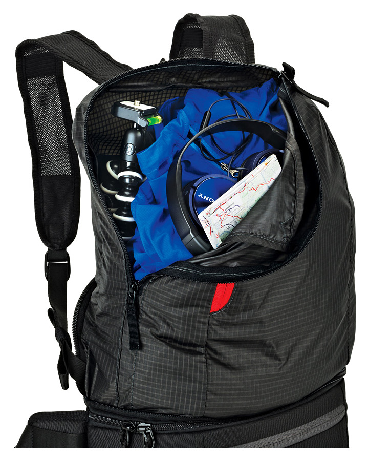 Kapacita batohu: CSC, alebo DSLR so základným objektívom, druhý objektív, fotopríslušenstvo, statív a osobné veci