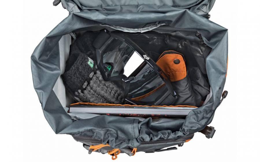 ? 6 pevných upínacích kompresných pásikov so silnými karabínami a úchytnými okami pre pripevnenie statívu a veľmi ťažkej výbavy (vrátane lyží alebo dosky) na prednej a oboch bočných stranách,