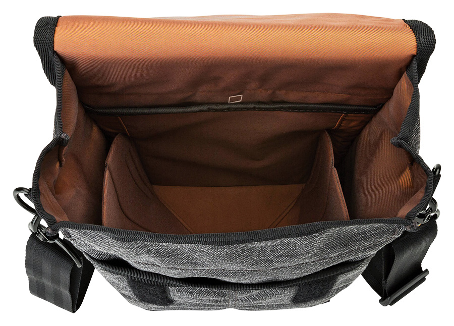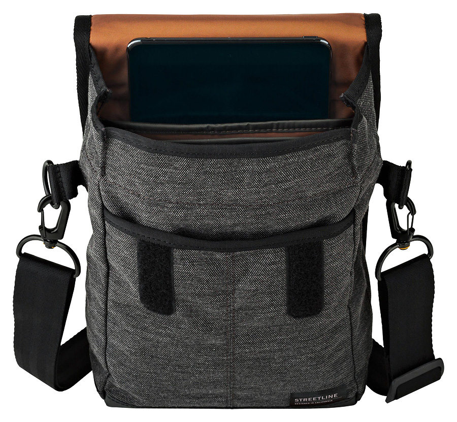Lowepro StreetLine SH 120 je ramenná brašna veľmi originálnej konštrukcie, ktorá popri elegantnom mestskom dizajne ponúka efektívnu ochranu vo vnútri uloženej fototechniky. Tú zabezpečuje dobre polstrovaná fotokomora so zaujímavo riešeným systémom priehradiek s ktorým sa dá vnútorný priestor brašny rozčleniť podľa vašich aktuálnych potrieb. Tieto priehradky/fotovanička sa dajú zložiť k vnútornej zadnej strene brašny a tak je možné využiť celý vnútorný priestor brašny. Na tejto vnútornej zadnej stene brašny je aj priehradka pre uloženie tabletu do veľkosti iPad mini. Do fotokomory je prístup cez veľké veko na suchý zips, ktoré tvorí celú hornú a prednú stranu brašne. Na tomto veku je z jeho prednej vonkajšej strany vrecko uzatvárané vodovzdorným zipsom, ktoré je vhodné na drobnosti. Na prednej strane brašny sú dve vrecká na rôzne drobnosti, ktoré zakrýva predné veko brašny. Po boku brašny sú kovové úchyty pre ramenný popruh. Ten je pohodlný, dostatočne široký, dĺžkovo nastaviteľný a na oboch koncoch vybavený otočnými kovovými karabínkami.