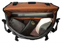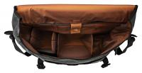 Samotná brašna je ušitá z kvalitnej dobre impregnovanej bavlnenej tkaniny 600D Oxford a jej spodná časť je z tej istej tkaniny ale opatrenej oteruvzdorným a nepremokavým trojnásobným polyuretánovým záterom. Vnútrajšok je vystlaný polstrovaním a 70D nylonom a polyesterom.