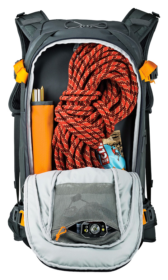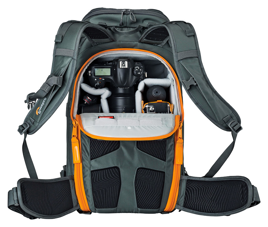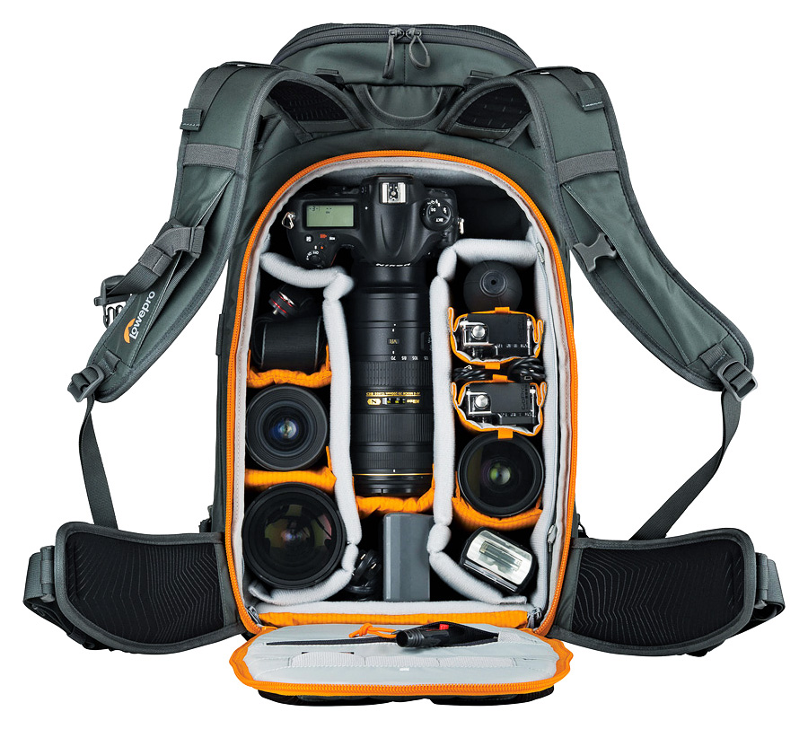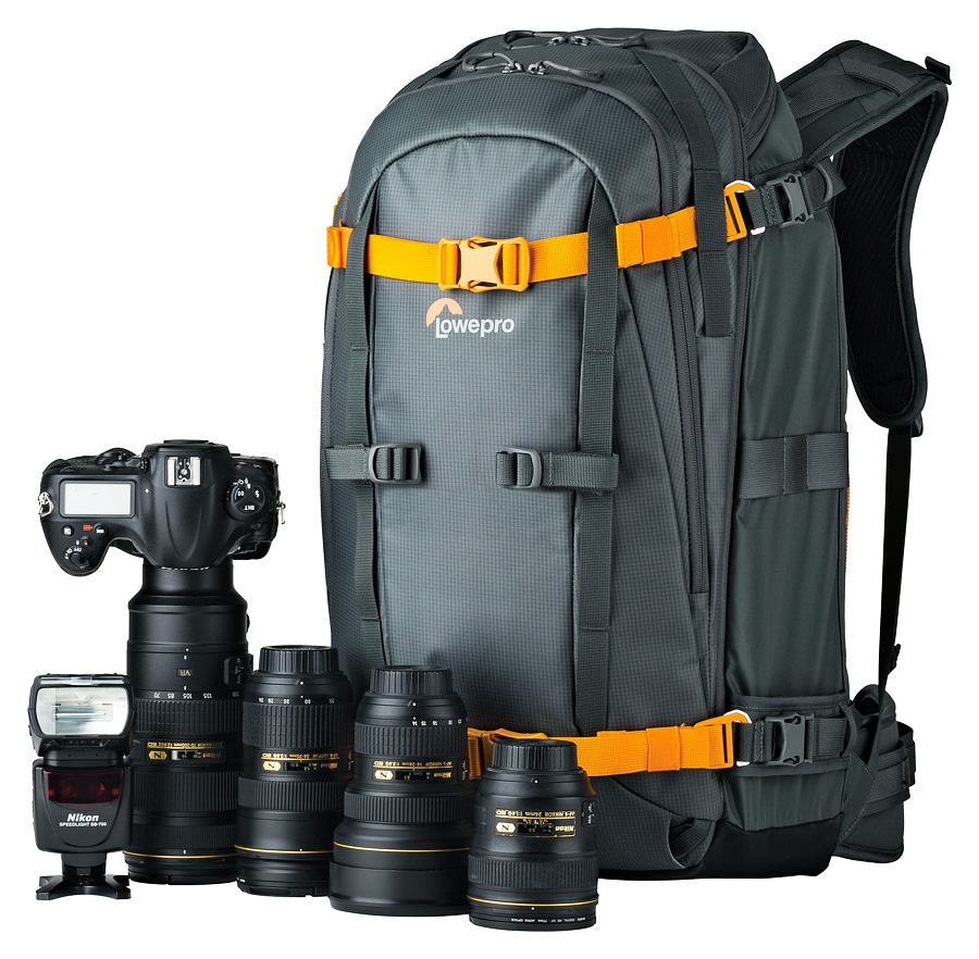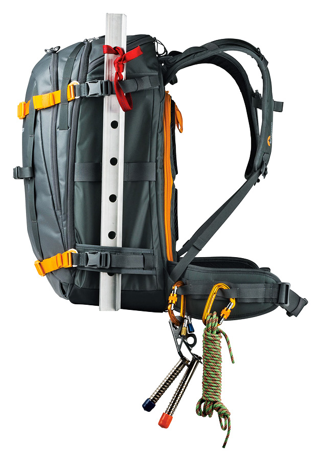 Kapacita batohu: 1-2 Profesionálne DSLR so základným objektívom, 2-4 ďalšie objektívy, blesk, GoPro, foto-video príslušenstvo, statív, osobné veci (doklady, mobil, penaženka apod.), športová výbava (karabíny, expresy, lano, sedák, lezky, snowboard, lyže, prilba, lavínová výbava apod.)