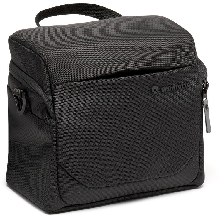 Poklop sa otvára od tela, nič vám tak pri vyťahovaní fotoaparátu nebude prekážať. Taška prichádza tiež so zárukou systému Manfrotto Protection System. Karty a batérie je možné vložiť do dvoch vnútorných vreciek, takže si môžete byť istí, že je všetko bezpečne uložené.