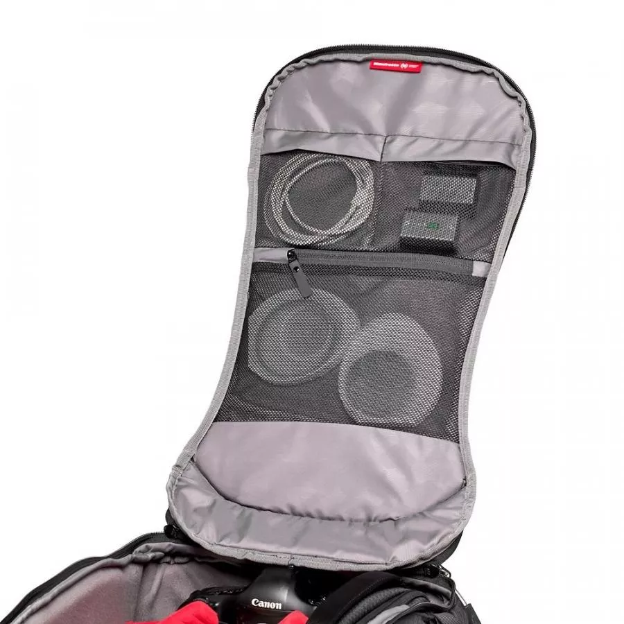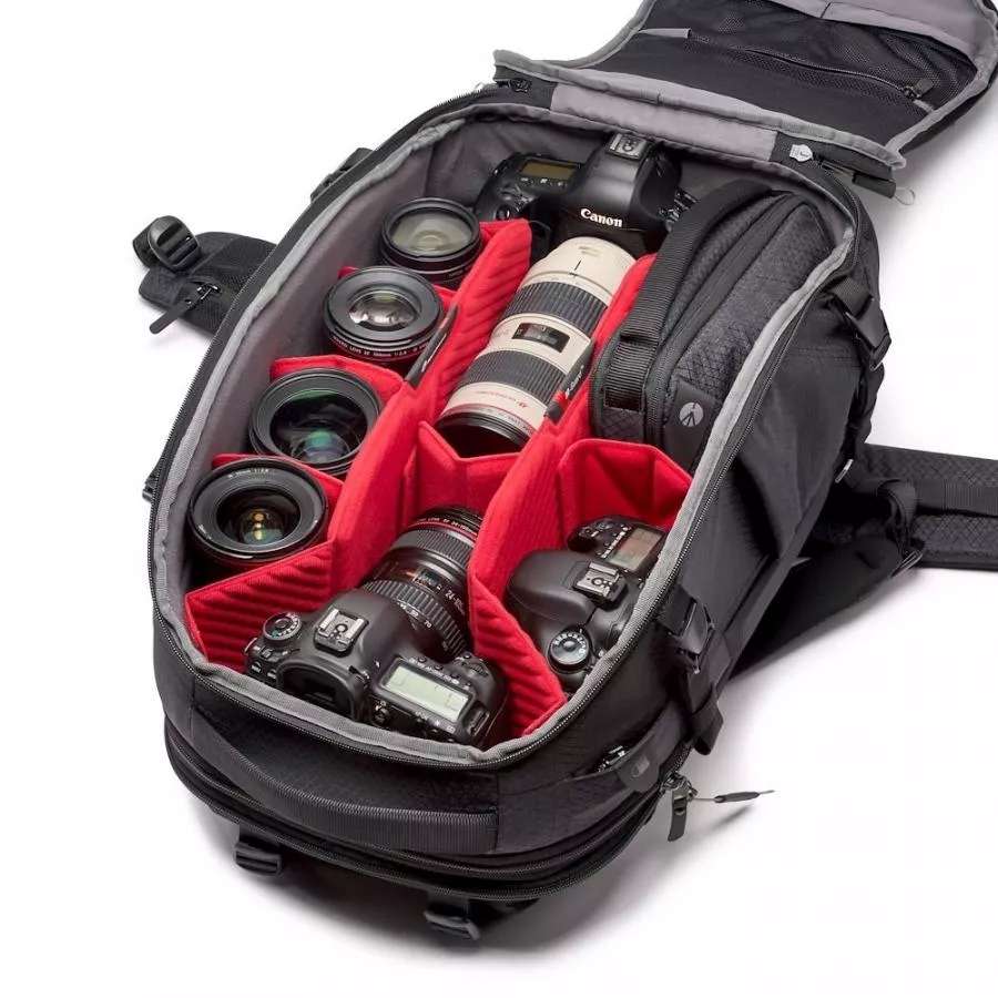 PRO Light Flexloader ponúka plne polstrovaný priestor s prispôsobiteľným interiérom. Plný prístup z prednej strany umožňuje ľahké usporiadanie techniky aj manipuláciu s ňou. Batoh ponúka niekoľko možností uchytenia statívu a ďalšieho príslušenstva. Na vnútornom paneli je batoh vybavený organizačným vreckom pre drobné príslušenstvo. Súčasťou je aj samostatný organizér pre káble, nabíjačky a ďalšie príslušenstvo. Batoh pojme profesionálnu techniku typu DSLR, CSC, viac objektívov, menšie skladateľné drony, stabilizátory a podobnú techniku.