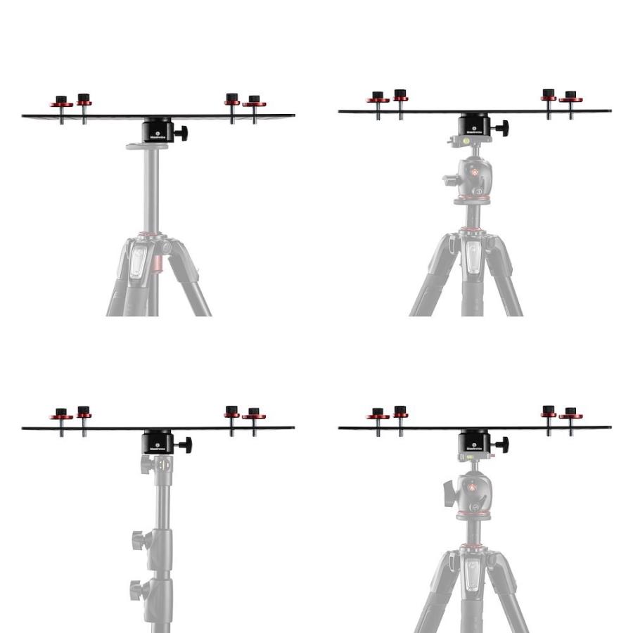 Podstavec ponúka niekoľko možností uchytenia pomocou priloženého adaptéra, ktorý je umiestnený na spodnej strane podstavca (16mm – 5/8“, 1/4“ a 3/8“, Arca-Swiss). Vďaka tomu je užívateľovi umožnené sa plne venovať záberom bez vyrušenia.