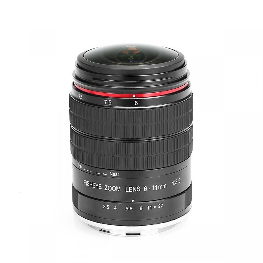 Fish eye zoomový objektív so širokým rozsahom 6-11 mm o svetelnosti f / 3,5. MC. S ochranouj vrstvou objektívu.