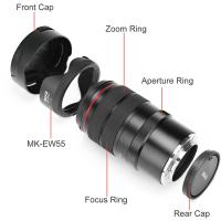 Manuálny objektív bez stabilizácie. Slnečná clona v balení. Kovový bajonet.