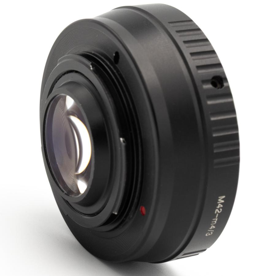 Kovový adaptér umožňuje nasadiť staršie objektívy so závitom M42 na telá bezzrkadloviek Micro 4/3 (Panasonic, Olympus). Adaptér disponuje optikou, ktorá zmenšuje kruh vykresleného obrazu na rozmer snímača Micro 4/3. Ohnisko objektívu je vo výsledku polovičnej hodnoty a svetelnosť o jednu hodnostu clony vyššia. To znamená, že napr. 50mm objektív bude na digitálnom fotoaparáte zobrazovať rovnaký zorný uhol ako na kinofilmovom fotoaparáte, a do fotoaparátu prenikne viac svetla.