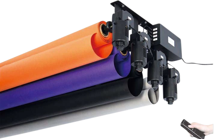 Pomocou bezdrôtového diaľkového ovládača budete môcť ovládať 3 rolky papiera/mušelínu/látky.