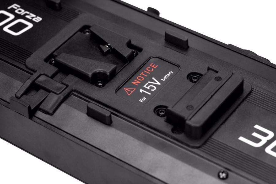 Pre udržanie nízkeho ťažiska a ľahko prístupných ovládacích prvkov z ovládacieho panela bol AC adaptér a doska s batériami zlúčené do jednej satelitnej jednotky, ktorá sa ľahko zavesí z akéhokoľvek stojana na svetlá. Satelitná jednotka slúži tiež ako pripojovací bod DMX, ktorý umožňuje svetlu Forza 300 rýchle prijatie do akéhokoľvek prostredia ovládaného pomocou DMX.