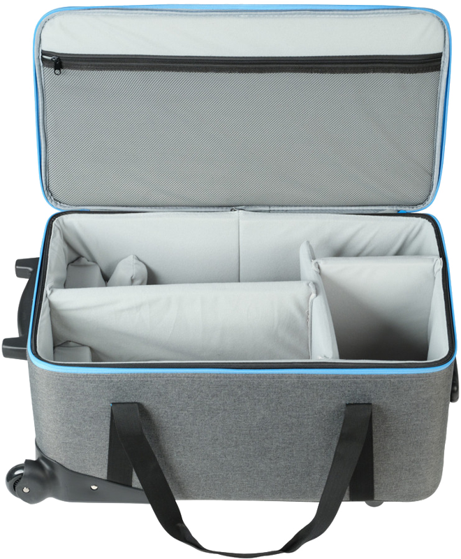 Súčasťou je pevná rýchloupínacia svorka na bezpečné uchytenie riadiacej jednotky na štandardné statívy aj hrubšie konštrukcie, viac než 9,5 m káblov, kvalitný transportný kufor na kolieskach, ochranný kryt COB a reflektor.