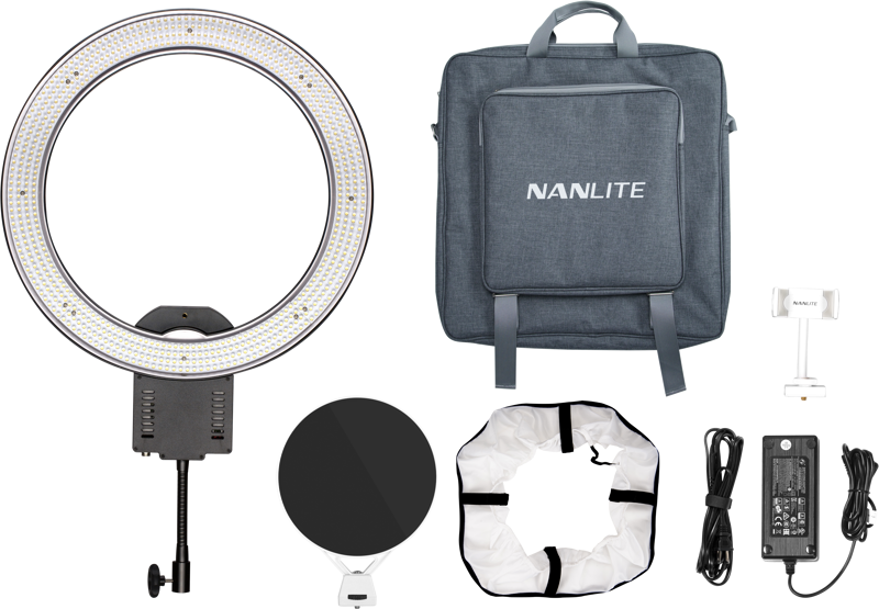 19" kruhové LED svetlo Nanlite Halo 19 s denným osvetlením, látkovým difúzorom a držiakom na smartfón