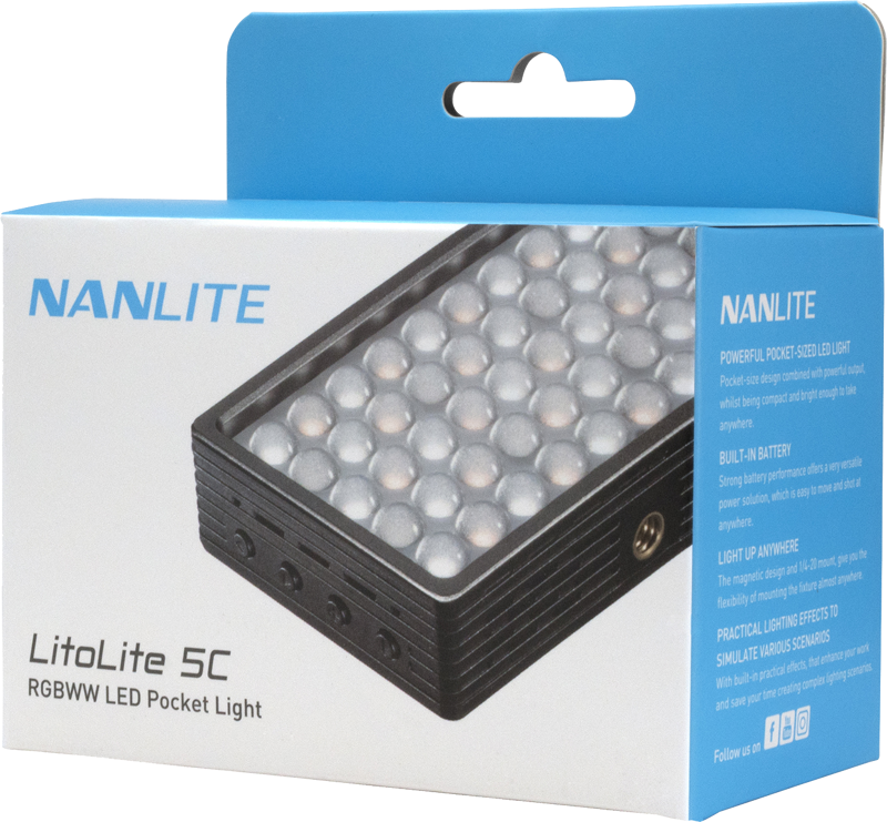 LitoLite 5C je dostatočne malý na to, aby sa vešlo do akéhokoľvek fotografického brašny. Magnetické telo a 1/4"-20 závit umiestnený na základnom paneli poskytuje flexibilitu pre upevnenie svítidla téměř kdekoli.