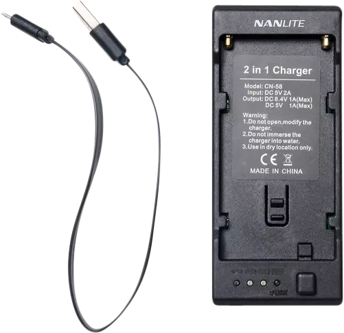 Nabite batériu vášho fotoaparátu z počítača alebo pomocou adaptéra (nie je súčasťou dodávky) zo siete vďaka nabíjačke 2v1 Nanlite CN-58, ktorá je určená pre batérie typu NP a LP-E6. Akonáhle je batéria plne nabitá, môžete ju pomocou micro USB portu použiť na nabíjanie vášho mobilného telefónu alebo iného zariadenia, ktoré disponuje USB alebo micro USB vstupom.