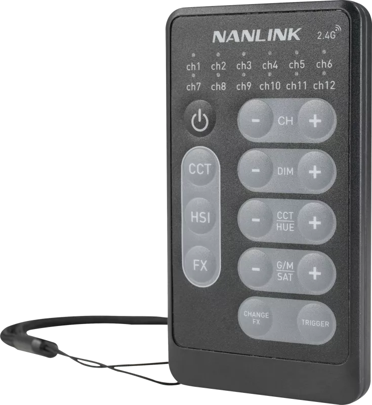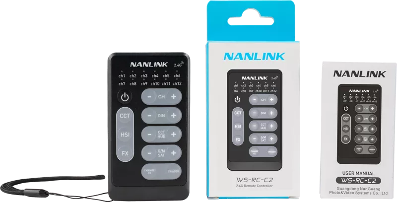 Multifunkčný bezdrôtový ovládač schopný upraviť jas, teplotu farieb, odtieň a sýtosť svetiel Nanlite a Nanlux vybavených vstavanými 2,4 GHz prijímačmi až do vzdialenosti 10 m. Na kompatibilných svetlách vám WS-RC-C2 umožňuje prepínať medzi režimami tvrdého a mäkkého svetla.