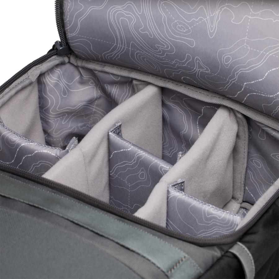 Batoh má nastaviteľné penové prepážky, vďaka ktorým si ho môžete prispôsobiť veľkosti svojej techniky a zaisťujú, že bude technika vždy chránená av bezpečí. Táto časť batohu je prístupná iba zozadu, čo zaisťuje ďalšiu bezpečnosť. Zadný prístup k foto výbave umožňuje batoh položiť a ľahko vidieť všetko vybavenie na jednom mieste. K dispozícii je aj integrované vrecko na notebook, čo vám poskytuje ešte viac flexibility.