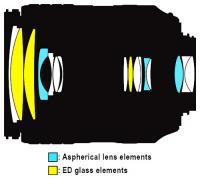 - Optická sústava obsahuje 3 ED šošovky a 3 asférické šošovky