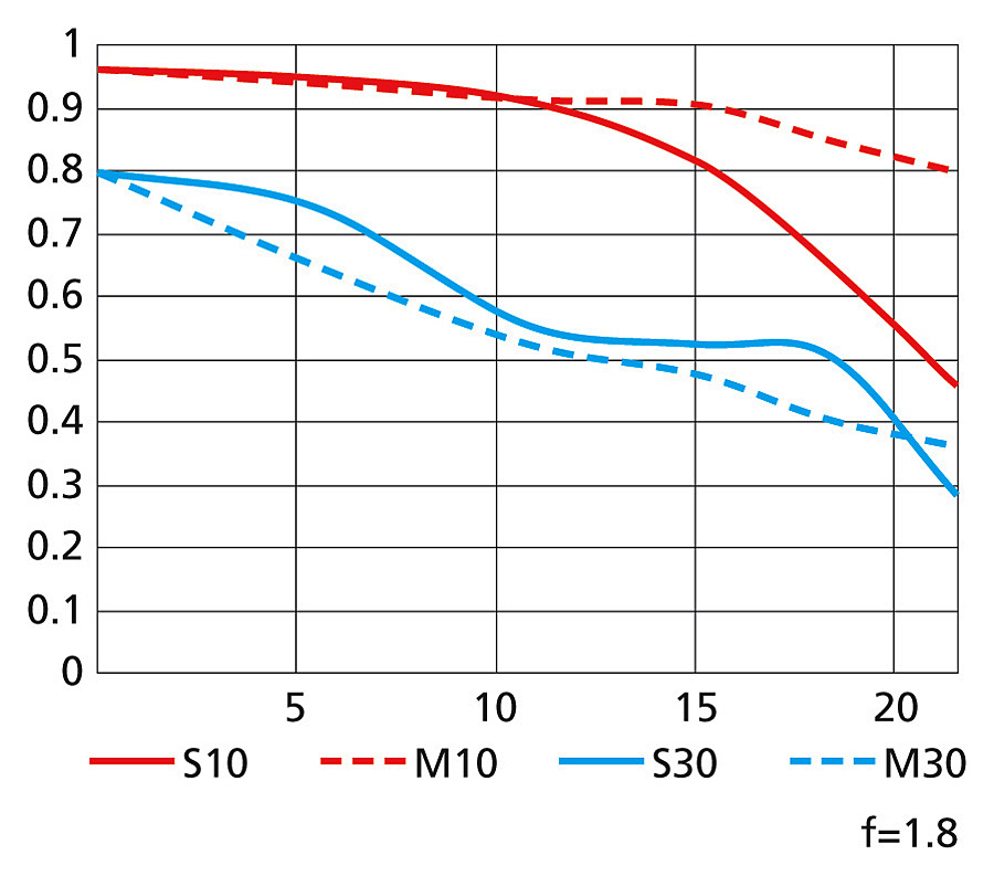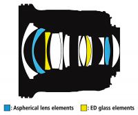 Stavba objektívu: 13 šošoviek v 11 skupinách s dvomi asférickými a dvomi ED členmi