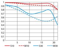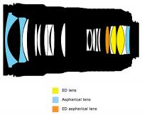 • Dve ED šošovky, jedna asférická ED šošovka, tri asférické šošovky a jedna HRI šošovka
