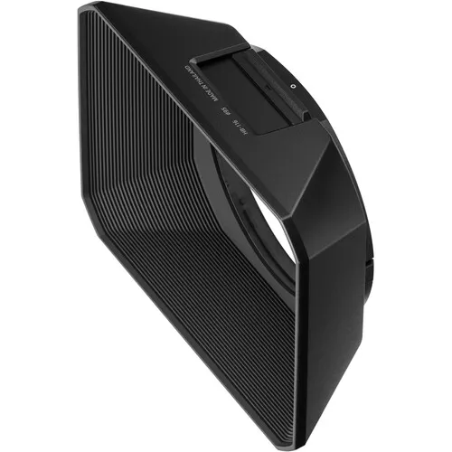 Obdĺžniková slnečná clona objektívu (súčasť balenia): s okienkom na filter, ktoré umožňuje nastavovanie 95 mm filtrov aj s nasadenou slnečnou clonou.
