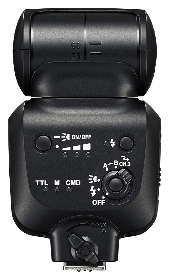 Uhol vyklopenia zábleskovej jednotky: 0° - 90°, aretácia v 0°, 60°, 75°, 90°